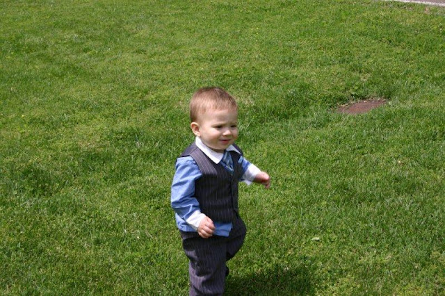 Easter Sunday rolled around quickly, and Isaiah received his first official Easter basket from the Easter bunny. He got several movies, a stuffed music giraffe, book, and some yummy healthy snacks...no candy yet! We then went to church with the most handsome little guy in the cutest suit ever! We learned what Easter is really about, and had a great day of worship. We then headed to mom and dads where we cooked out and had some good family time. They gave Isaiah a huge ball that he absolutely loves! It was such a nice day full of memories and laughs.